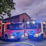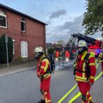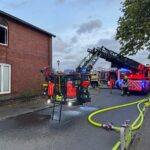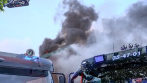 Kurz nachdem die Drehleiter in Stellung war, kam es zu einer Durchzündung im Dachbereich. Hier konnten von der Drehleiter aus gezielte Löschmaßnahmen vorgenommen werden.