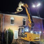 Da die Dachteile von der Korbbesatzung nur sehr schwer entfernt konnten, wurde ein Bagger eingesetzt, um das Dach zu öffnen und so letztendlich das Erreichen der letzten Glutnestern zu ermöglichen.