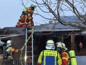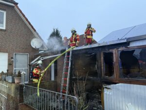 Mehrere Atemschutztrupps konnten das Feuer mit zwei handgeführten Strahlrohren zügig unter Kontrolle bringen und ein Übergreifen auf das Wohngebäude erfolgreich verhindern.