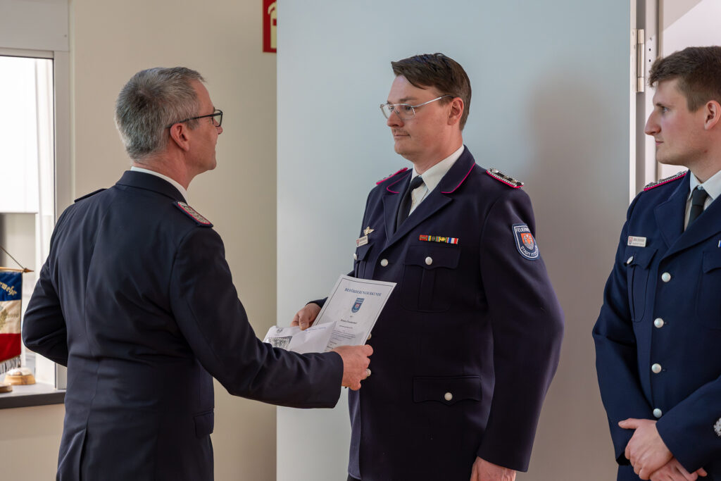 Bürgermeister Ralf Hoppe dankte allen Kameradinnen und Kameraden für ihr großes Engagement und ihre hohe Einsatzbereitschaft. Besonders hob er den Umzug in die neue Feuerwache hervor, der von zahlreichen Bürgerinnen und Bürgern begleitet wurde und die große Verbundenheit und das Interesse der Bevölkerung eindrucksvoll widerspiegelte.