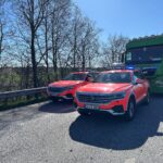 Der Fahrer des betroffenen LKW wurde bereits durch Ersthelfer betreut. Gemeinsam mit dem Rettungsdienst wurde er die Böschung hinauf zur weiteren Versorgung in einen Rettungswagen gebracht.
